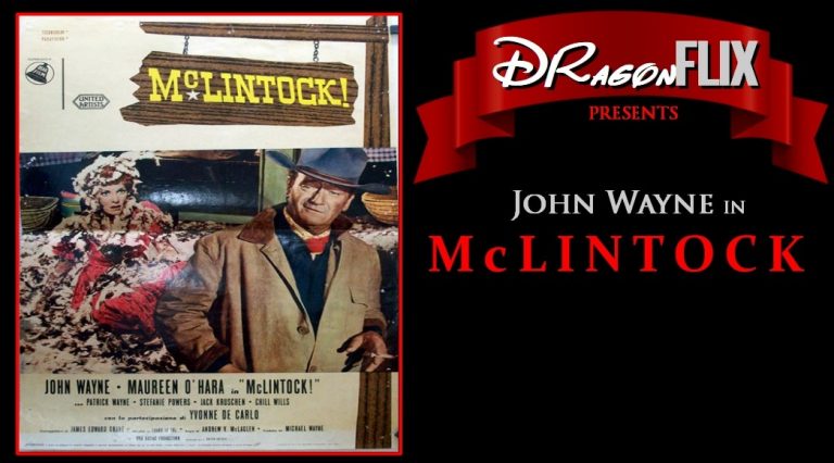 McLintock! is a 1963 American western and comedy film, starring John Wayne and Maureen O’Hara, directed by Andrew V. McLaglen. The film co-stars Wayne’s son Patrick Wayne, Stefanie Powers, Jack Kruschen, Chill Wills and Yvonne DeCarlo. Loosely based on William Shakespeare’s The Taming of the Shrew, the project was filmed in Technicolor and Panavision and produced by Wayne’s company Batjac Productions.
